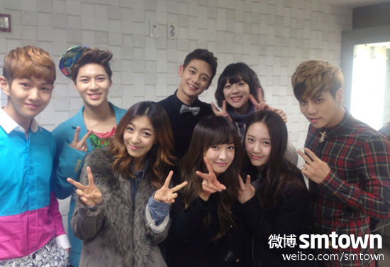 2013-2-28今天(2月28日)上午,SM娛樂公司官方微博曬出一張韓團f(x)四成員助陣同公司組合SHINee演出...面,不約而同舉起剪刀手,一派和樂融融的景象。SHINee近日攜新專輯回歸,演藝事業風生水起演出不斷,作為同公司師妹f(x)也前來為師兄打氣加油,不禁想起一首歌“因為我們是一家人,相親相愛的一家人~”。[繼續閱讀] -