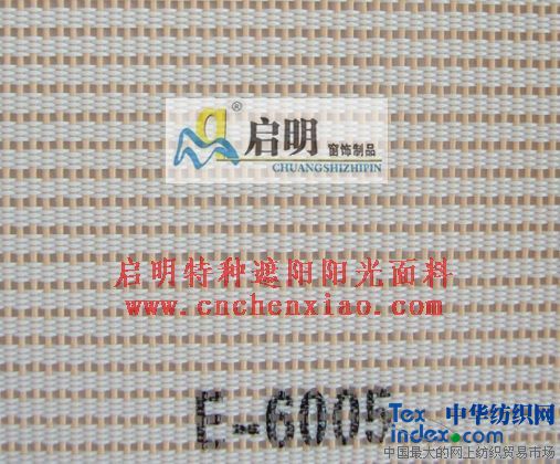 陽光面料  規格200/250cm 用途窗簾、天棚簾 成份聚脂纖維、乙烯基包覆 型號E-6005