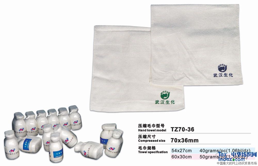 高級環保壓縮毛巾是二十一世紀的高科技成果、采用100%純棉經高溫壓處理而成的新一代產品。放入水中浸片刻即可張開使用。本產品新奇獨特,干凈衛生,產品企業形象宣傳極具效力。廣泛用于廣告宣傳界、酒店、旅游公司等。